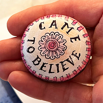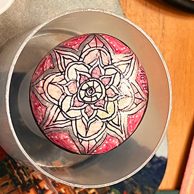 One of a kind, hand painted stones make such a personal gift! These stones have been collected by me over the years for their shape as well as the texture. They are painted with acrylic paint, and finished with a clear coat of varnish to protect the artwork. Mandala on one side, "Came to believe" with flower on other.
